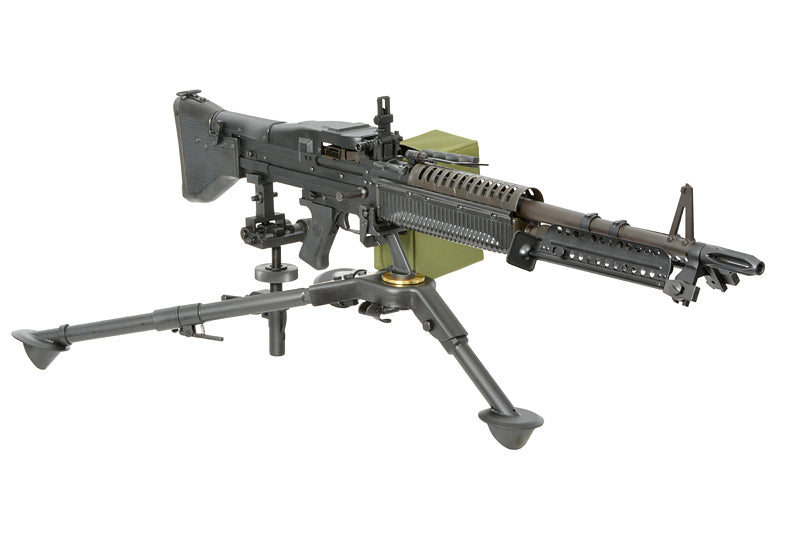La versión para airsoft presenta una construcción totalmente metálica, cruceta y elevación ajustables para un fuego sostenido, y es compatible con los modelos A&K M60/Mk 43, LCT, Inokatsu y VFC.