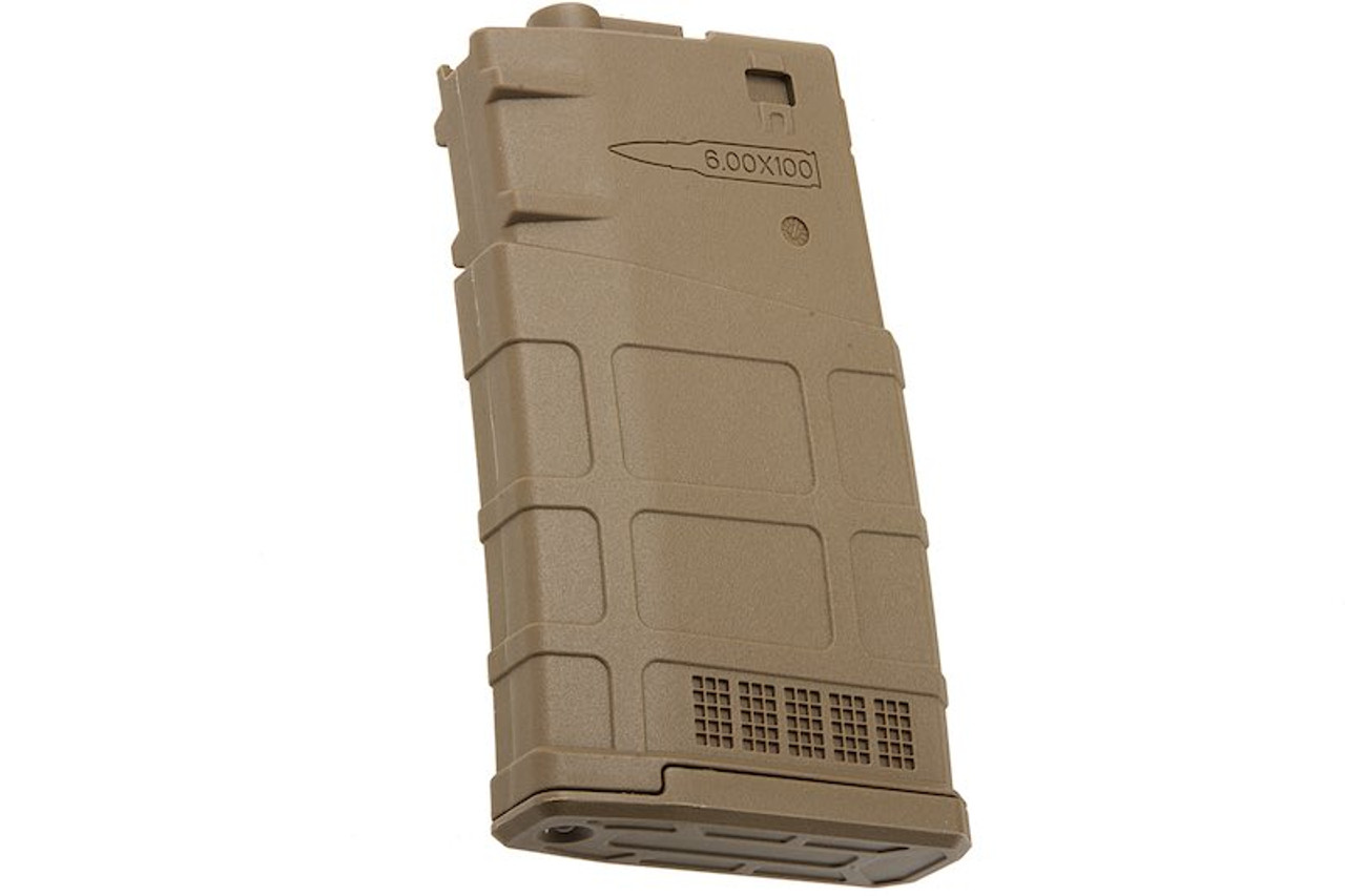 El cargador ARES de 130 cartuchos es un cargador de capacidad media de primera calidad, diseñado para las AEG de las series ARES AR308 y SR25-M110. Este cargador está fabricado en polímero ligero y tiene una capacidad total de 130 BBs.
