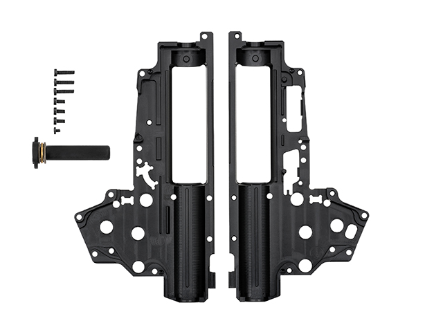 Nuestra caja de engranajes se ha probado con un resorte M160 sin presentar signos de desgaste ni rotura a largo plazo. La superficie de la caja de engranajes está anodizada decorativamente.