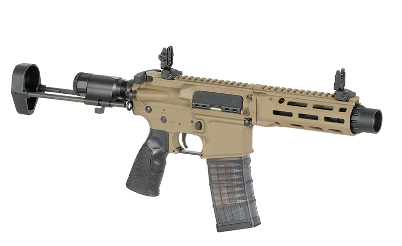 CM.105B DDM4 PDW SBR con licencia, la plataforma AR15 ultracompacta de Daniel Defense. **La réplica fue creada gracias a la colaboración entre CYMA y EMG**. El DDM4 PDW no solo es un rifle de airsoft ligero, compacto y fácil de transportar, sino que también ofrece un gran placer de disparo. La réplica tiene una **cadencia de disparo de 25 bbs por segundo** y un módulo **ETU programable** de Eshooter, que permite personalizar los modos de disparo, ampliar sus funciones, aumentar su vida útil y proteger el mecanismo.