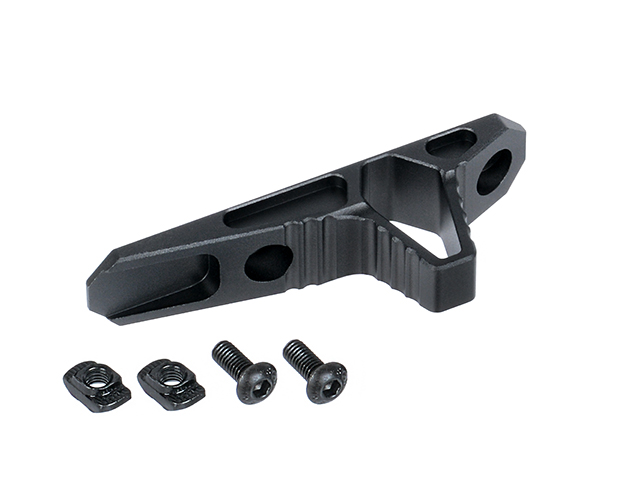 It can be mounted on a handguard with the MLOCK and KeyMod systems.