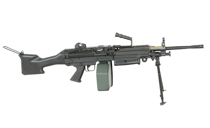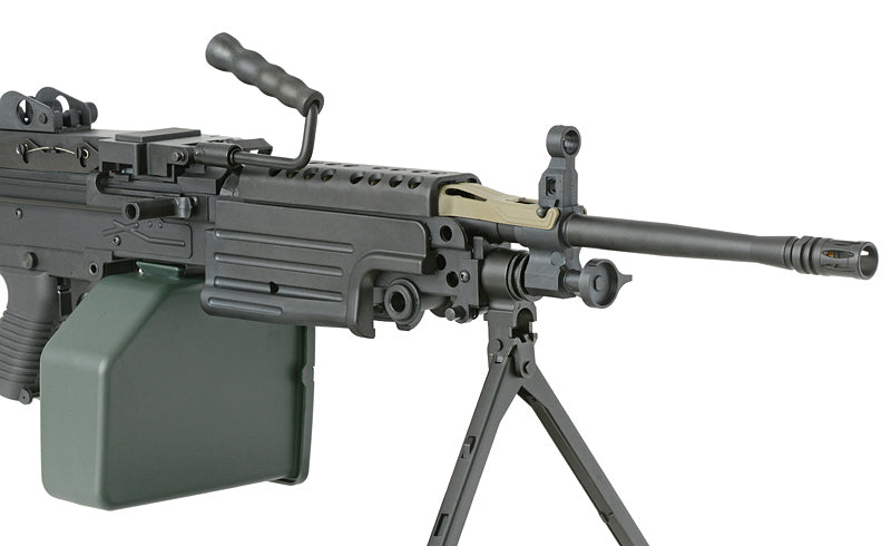 Esta construcción M249 MKII completamente de polímero no es solo una réplica ordinaria; muestra con orgullo las marcas oficiales belgas de FN Herstal , autorizadas bajo la prestigiosa licencia CYBERGUN . Con una artesanía precisa y atención al detalle, la réplica captura fielmente la esencia del original, ofreciendo una experiencia auténtica y realista. Prepárate para experiencias inigualables en el mundo del airsoft con el A&K FN M249 SAW . Taiwangun ha prestado especial atención a garantizar que los grabados estén en los lugares correctos tanto en el cuerpo como en el cañón.