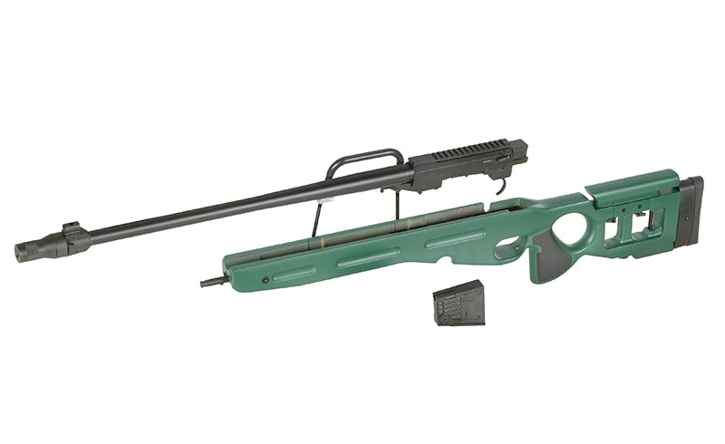 La réplica del rifle de airsoft SV98 o SW-25(W) , inspirada en el famoso modelo ruso, representa una innovación notable en el mundo del airsoft. Fabricada meticulosamente por la prestigiosa compañía Snow Wolf, este rifle reproduce fielmente el diseño original, específicamente diseñado para alcanzar objetivos a una impresionante distancia de hasta 1000 metros. Introducido en 1998, el SV98 ganó reconocimiento rápidamente y entró oficialmente en servicio con las fuerzas rusas en 2003. Desde entonces, ha demostrado ser un activo invaluable para tiradores y francotiradores en diversos conflictos, como la Guerra Ruso-Georgiana, la Guerra Civil Siria y la invasión rusa de Ucrania, mostrando su innegable efectividad y características excepcionales.
