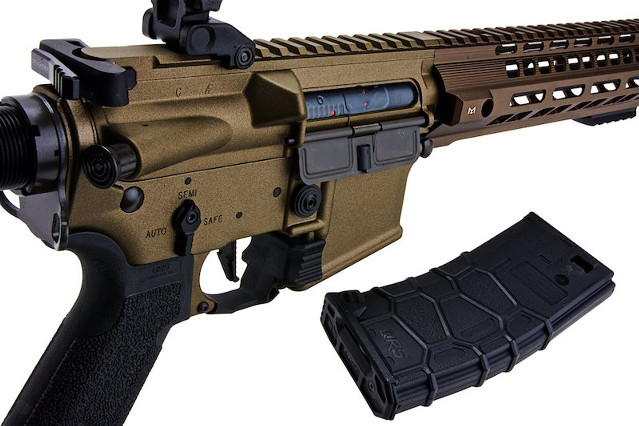 El VFC Avalon Samurai EDGE incorpora la caja de engranajes VFC ECS con el sistema GATE ASTER. Esto la convierte en una de las mejores AEG de fábrica. El GATE ASTER cuenta con electrónica programable, como un sensor de proximidad del gatillo que permite ajustar con precisión la sensibilidad de 250 ajustes, una función de gatillo binario como configuración básica, un sensor óptico de leva de engranaje compatible con todo tipo de engranajes y permite programar el modo de disparo, desde semiautomático/automático hasta semiautomático/ráfaga, por ejemplo. Además de esta impresionante lista, el MCMR viene de serie con componentes internos Maple Leaf, como el hop-up bucking y un cañón interior de precisión que permite agrupaciones más ajustadas y un mayor alcance. Por último, el Samurai EDGE está preparado para Deans (T-Plugs).